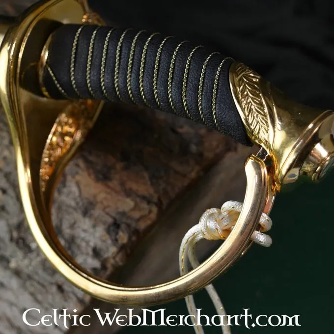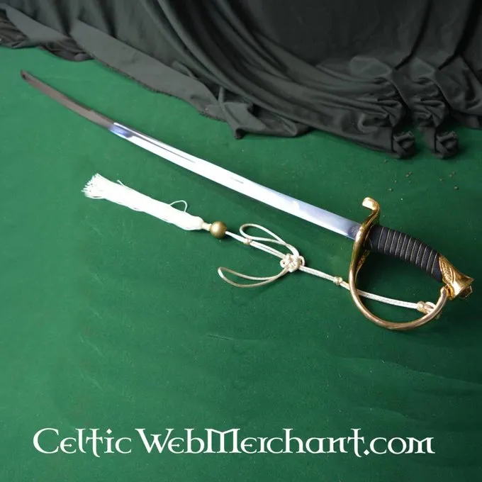 Denne sabel er leveret, herunder en skede. Dens længde er 95 cm, og det har en klinge på 71 cm, der er dekoreret med ætsning. Kurven og læderet skede er delvist lavet af messing