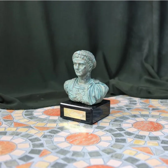 Denne buste er en kopi af en buste af kejser Tiberius. Den oprindelige er en del af samlingen af det arkæologiske museum i Napoli. Disse statuer blev ofte malet for at gøre dem synes livagtige.