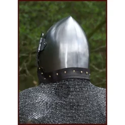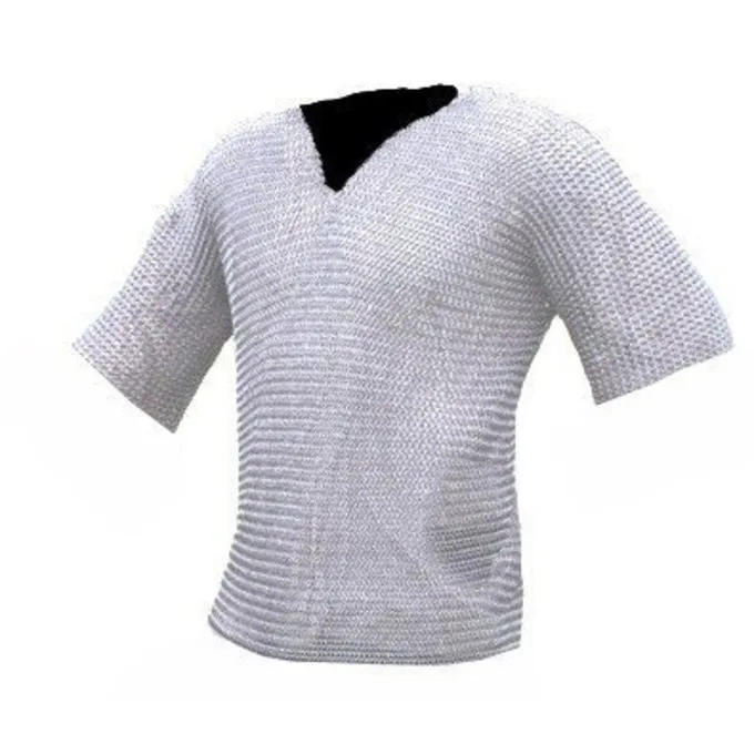 Denne brynjefrakke er fremstillet af 1,6 mm tyk galvaniseret gathered Runde ringe med en indre diameter på 8 mm. Ringene er håndvævede fire i én. Den brynjefrakke har mid-lange ærmer og når lige over hoften.