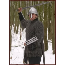 Produkt detaljer: Maksimum Hovedets omkreds: 67 cm / Ståltype: 5500 kulstofstål / Stål Tykkelse: 1,6 mm / indvendig diameter: 8 mm / Nittet: gathered / Vævemetode: 4: 1 konstruktion / Vægt: 3 kg / based on da historisk original? Ja