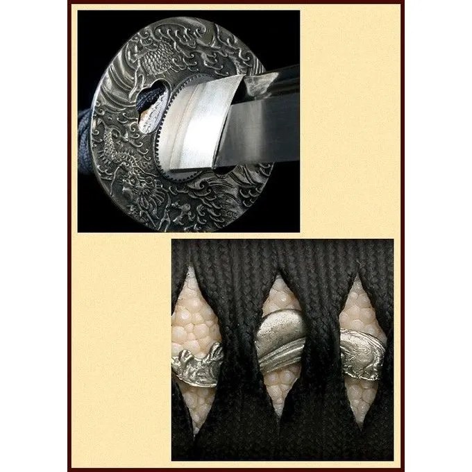 Dette katana er fuldstændig hånd-smedet og har en knivskarp klinge. Dette sværd vejer kun 1237 g og har en længde på 104 cm med et greb 28 cm og et blad på 75 cm med en Tykkelse af 7 mm. Den katana er lavet af 1055 kulstofstål.