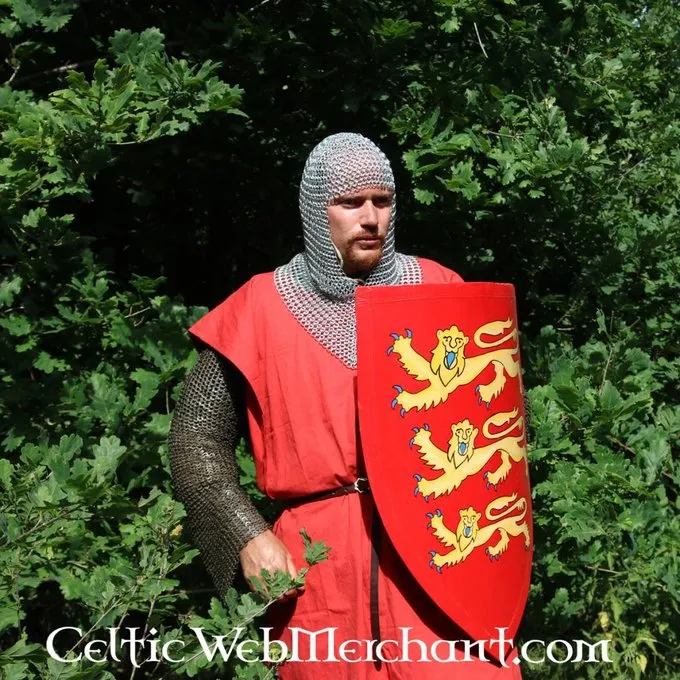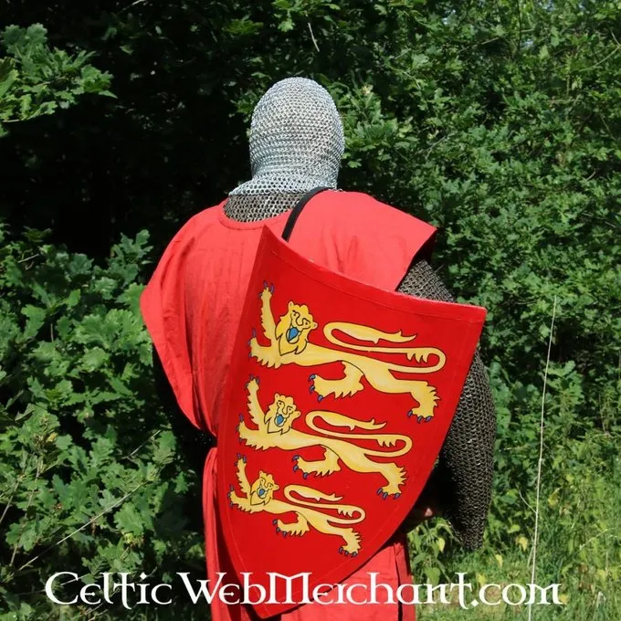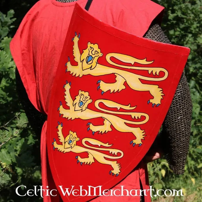 Denne Skjold er malet med den engelske heraldik. Skjolder som denne blev brugt af engelske konger siden Edward I. Denne Skjold er competely funktionel, det er lavet af krydsfiner ligesom originalerne. Den måler 69 x 42 cm og vejer ca.. 1388 gram.