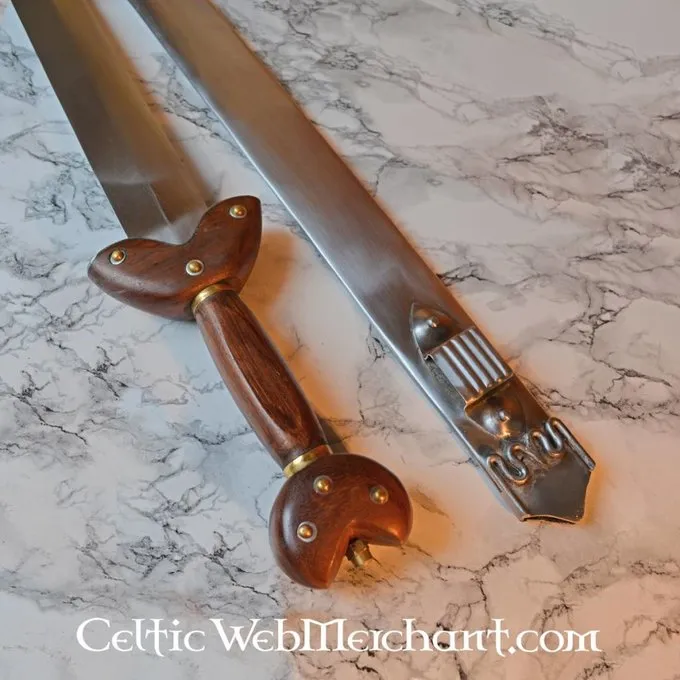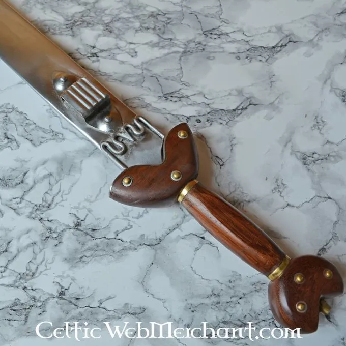 Dette sværd er en kopi af en original fra det 3.-1. århundrede f.Kr. fundet i Marne-området. I dag er det en del af samlingen af Musée d’archéologie nationale nær Paris. Sværd som disse blev brugt under Caesars galliske krige.