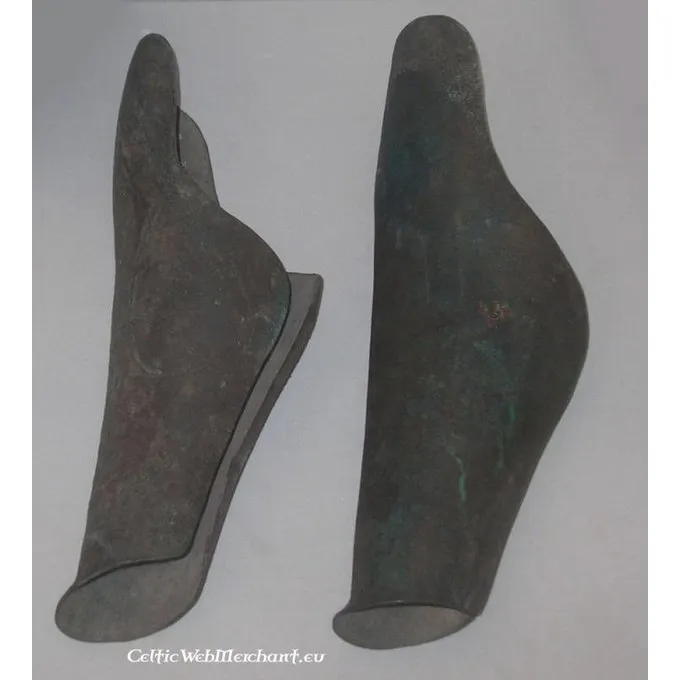 Dette par messing fedtegrever er lavet efter flere udgravninger af klassiske græske rustning plade. Grever som disse blev primært slidt i oldtiden, fx ved hopliter og Triarii.