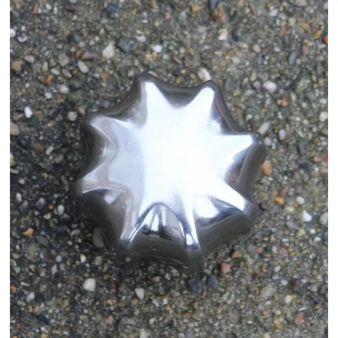 Dette er en kopi af en middelalderlig stridskølle hoved, lavet af støbt stål. Det har en Tykkelse ca. 5 til 6 mm, højden er 5-6 cm, og det har et øje på ca.. 29 mm. Det weigha 0,4 kg.