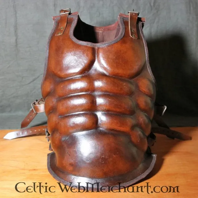 Denne musculata er lavet af tyk okselæder. Den består af en bryst- og bagplade, der let kan fastgøres og justeres ved læderremme.