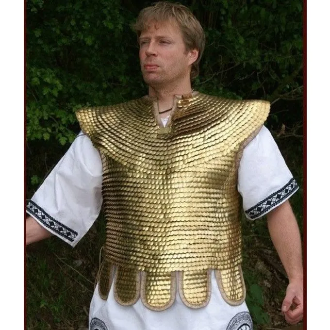 Skælrustning ligesom dette blev båret af romersk auxiliae under antikken. Den blev primært båret af auxiliae med en persisk arv. I Persien er endnu ældre tradition for at bære skælrustning som denne, og det blev endda slidt før kampagnerne af Alexander den Store. I Carnuntum, hovedstaden i den romerske provins Pannonia, mere end 30 forskellige varianter af denne skælrustning blev udgravet. Denne skælrustning er lavet af messing, den er baseret på originaler, der blev båret omkring 100-250 e.Kr.. Vægten er fastgjort til et lag af læder.