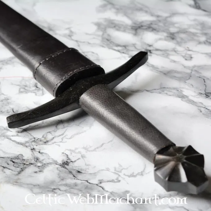 Denne Dolk er lavet af kulstofstål. Knap og cross-vagt er bruneret og match med den mørke greb. Den Dolk leveres herunder en skede, dens længde er 30 cm, det har en klingelængde på 18 cm og en max. bredde på 2,8 cm.