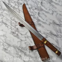 Produkt detaljer: Længde: 73,5 cm / Klingelængde: 55,5 cm / Grebets Længde: 18 cm / Vægt: 906 g / Ståltype: DA45 kulstofstål hårdhed 48 HRC. / Kant: halvskarpt / Tangkonstruktion: konstruktion with fuldt tang / Greb: træ / based on da historisk original: