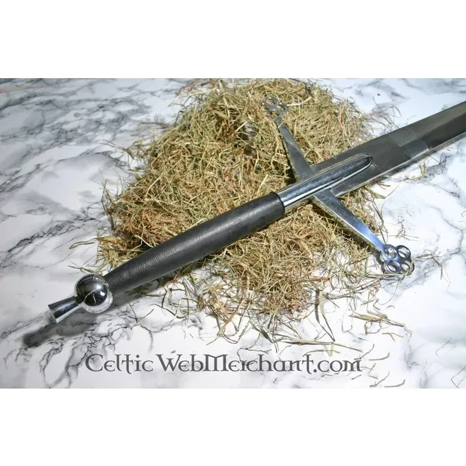 Længden af bladet af denne Claymore ca. 105 cm. Dens træ greb er pakket rundt med læder til komfort. Grebet ender i bladet for ekstra soliditet.