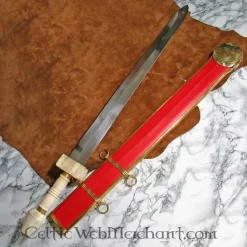 Produkt detaljer: Længde: 85 cm / Klingelængde: 62,5 cm / Grebets Længde: 22,5 cm / Klingens Bredde ub parerstangen: 5 cm / Vægt: 1900 g / Ståltype: DA45 fjederstål, hårdhed 48 HRC / Kant: Halvskarpt / Tangkonstruktion: Konstruktion with fuldt tang / Knap