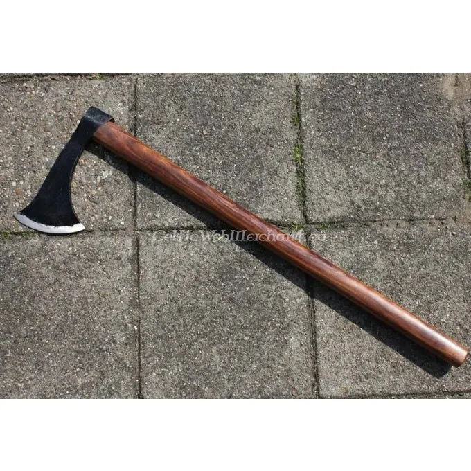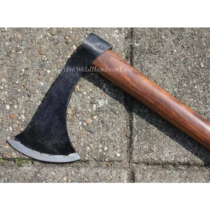 Længden af denne Francisca økse 81 cm og det har en hånd-smedet øksehoved af jern med en maksimal længde på 24 cm. Den vejer 1,6 kg, bladet leveres skærpet.