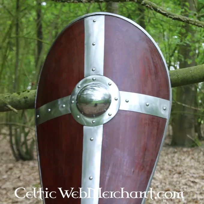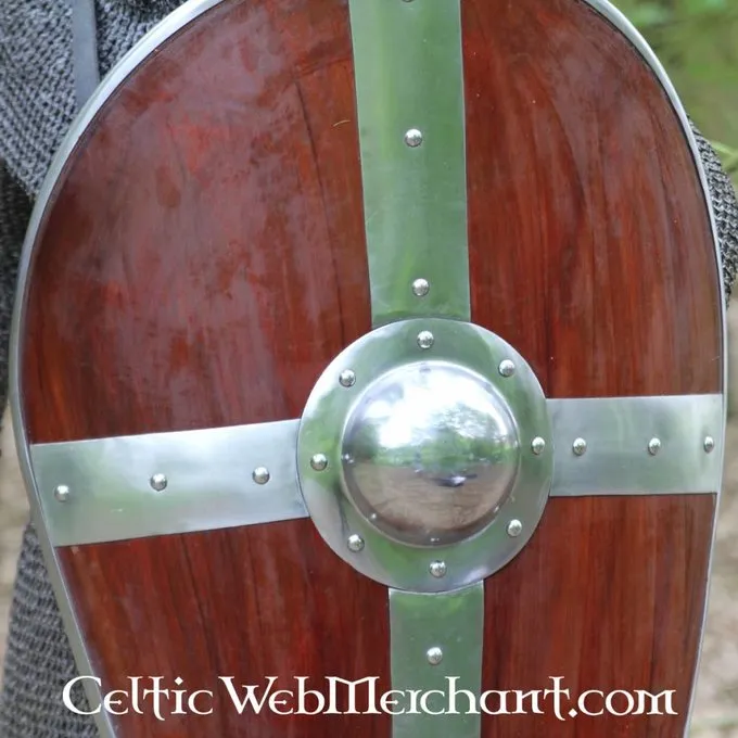 Dette skjold er lavet af 1,3 cm tyk træ og det har et fremspring og på tværs af stål. Bagsiden har 5 læder bånd til komfort. Skjold har en højde på 139 cm, dens bredde er 60 cm og vejer 4,5 kg.
