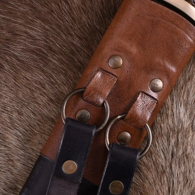 Materiale: DA45 fjederstål, hårdhed 48 HRC, træ, læder, messing