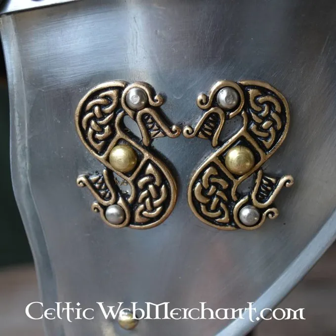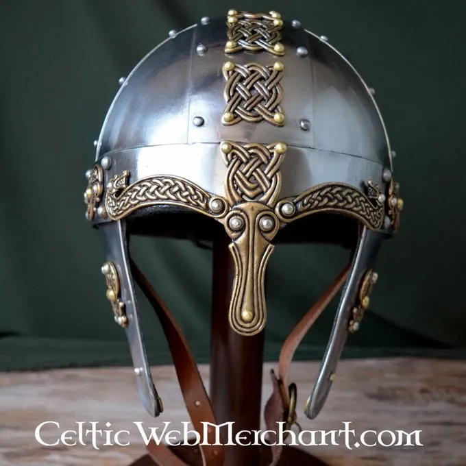 Denne tidlige Spangenhjelm er baseret originaler fra Vendel periode. Den Spangenhjelm har cheek flapper og en drage motiv på toppen af hjelmen.
