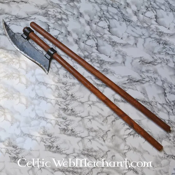 Dette lovforslag er meget lig den senere udviklede Lochaber økse, der blev brugt i alle kristne lande, men først og fremmest i Skotland. Kilder fortæller, at både hest og menneske kunne blive spaltet af en strejke af hellebard. Erfarne infanterister kunne gennembore en sele med kun én strejke af deres hellebard.