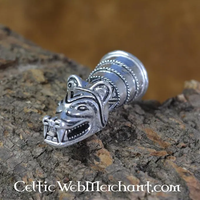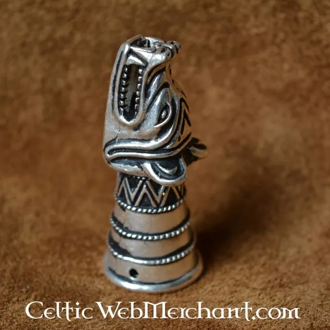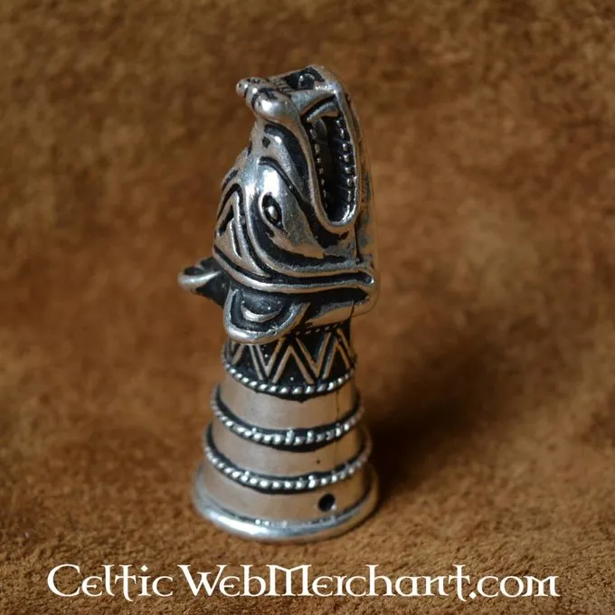 Denne drikkehorn dekoration er en kopi af et 14. århundrede original udgravet på Castle Douglas i Skotland (Dumfries, Galloway). Dette 13. århundrede drikkehorn dekoration refererer tilbage til vikingetiden og var eventuelt baseret på en endnu ældre original. Denne drikkehorn dekoration er lavet af bronze, og det er 5,7 cm lang, 2,2 cm bred og har en aksel på 4 cm. Den er velegnet til drikkehorn med en diameter på 1,9 cm på spidsen