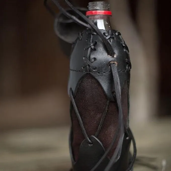 Dette er den perfekte egenskab for den krydrede festival goer. Næsten alle plastikflasker fra supermarkedet passer i denne holder. Vandrer du rundt på tørstig i løbet af en sommerbegivenhed og tager fat i din plastikflaske? Nu kan du gøre det helt i stil! Denne holder er også perfekt til LARP kampe, der matcher din kostume stil.