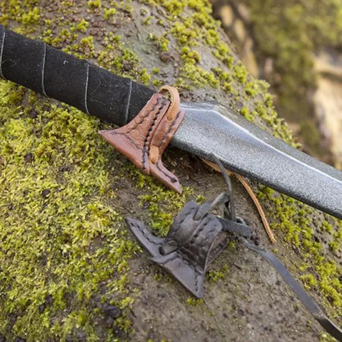 Larp elver sværd er ofte lavet uden en vagt, derfor de ikke passer ind i de fleste standard larp sværd indehavere. Du kan binde dette læder tilbehør til grebet af din Elven sværd lige over vingen. Det er en tilføjelse til det æstetiske udseende af din LARP sværd, men det sikrer også, at LARP sværd forbliver i holderen sværdet. Selvfølgelig er dette læder tilbehør er ikke kun egnet til larp sværd, men for hver LARP sværd, der ikke bo i en holder på grund af en kort vagt.
