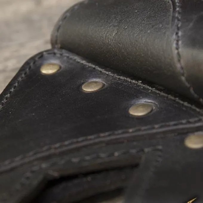 Denne høj kvalitet læder sværd holder er velegnet til næsten alle LARP sværd. Den maksimale knivbredde er 6 cm. Du kan hænge denne holder til dit bælte, så du hurtigt kan trække dit sværd under LARP kampe. Denne holder har smukke håndstitchede detaljer og et dekorativt mønster.