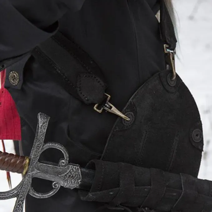 Denne baldric er det perfekte tilbehør til Larpers og Cosplayers af pirater, søfolk, musketerer og andre figurer. Den er lavet af højkvalitets velours læder og du kan justere det med stropperne til størrelsen af din LARP rapier, cutlass, sværd eller dolk. Det mindste diameter LARP sværdblad, for hvilket det baldriske er egnet, er 5,5 cm. Samlet set passer den til alle LARP sværd og dolk. Baldricens længde er også justerbar; du kan gøre skulderremmen længere eller kortere med messing spænde.