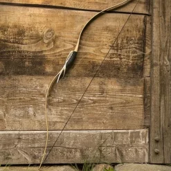Materiale: glasfiber, velour læder, træ / / Farve: lys træ / / Afspændt længde: 145 cm / / Hængte længde: 137 cm / / Tegn vægt: 24-26 lbs / / Egnet til larp og nyopførelse / / Levering herunder buestreng og kappe / / Baseret på en historisk original