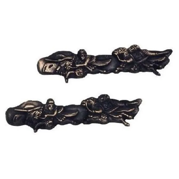Disse manuki sælges per par. De kan nemt placeres i grebet af den Katana, Wakizashi, tanto eller iaito. To krigere på hesteryg er afbildet på menuki.