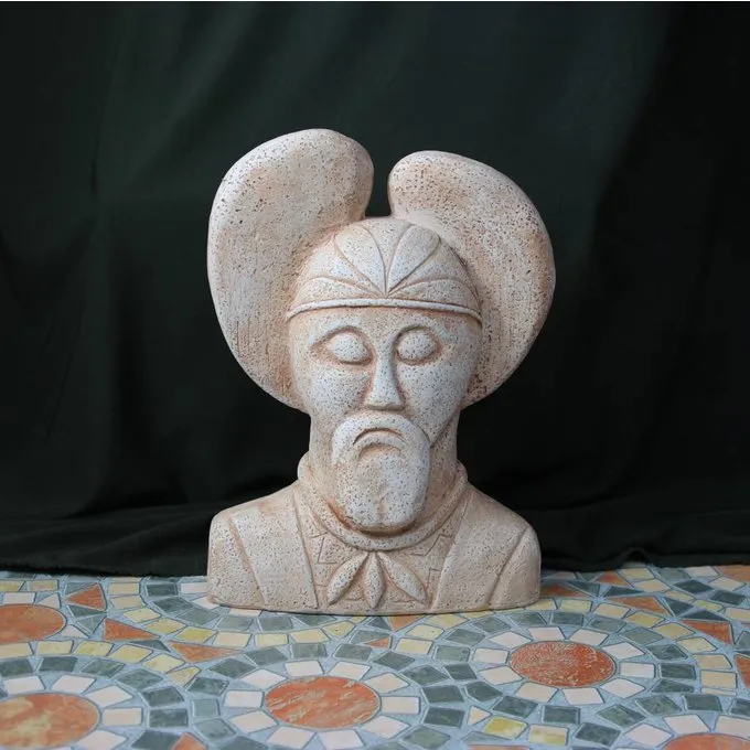 Denne buste er lavet af gips alabast og har en marmor piedestal. Den måler 27 x 20 cm. Formentlig disse statuer blev malet som det var tilfældet med græsk, etruskisk (og senere romersk) statuer
