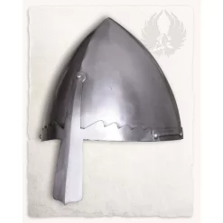En praktisk middelalderlig grundlæggende hjelm, velegnet til bueskytter eller til lejlighedsvis brug. Hjelmen er lavet efter den velkendte Norman Hjelme with næseskinne. De var meget populære mellem den 9. og 14. århundrede, og de blev båret over hele Europa. De er afbildet på bl.a. Bayeuxtapetet.