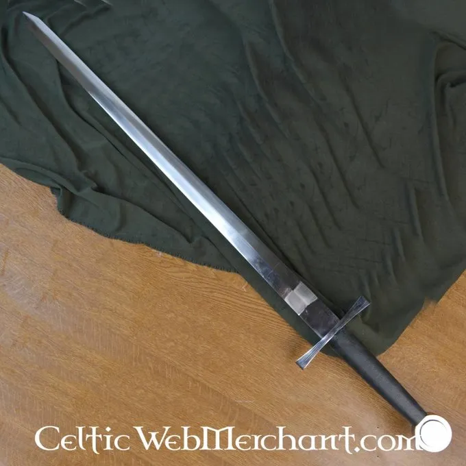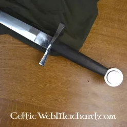Produkt detaljer: Længde: 97,5 cm / Klingelængde: 77 cm / Grebets Længde: 15 cm / Klingens Bredde ub parerstangen: 3,7 cm / Vægt: 1400 g / Ståltype: DA45 fjederstål, hårdhed 48 HRC / Kant: Halvskarpt / Tangkonstruktion: Konstruktion with fuldt tang / Knap
