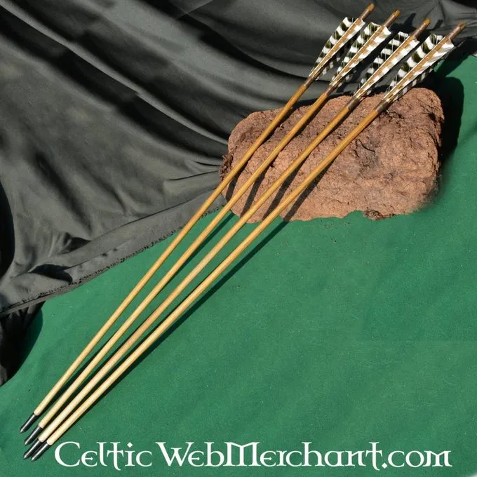 Dette autentiske pil er lavet af gran træ og har et oversavet i nock. Dens længde er ca.. 79 cm og er velegnet til buer med en trækvægt på 60 til 70 pounds (27 til 31,5 kg). Fjerene er lavet af naturlige materialer og er fastgjort med bronze tråd. Den pilespids er en kopi af den eksisterende pilespidser.