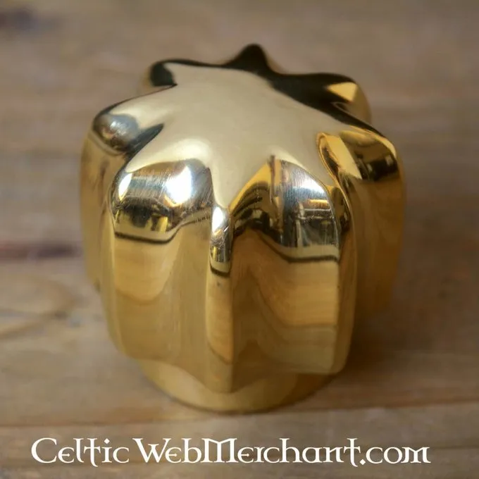 Dette er en kopi af en middelalderlig stridskølle hoved lavet af støbt messing. Det har en Tykkelse ca. 5? 6 mm, en højde på 5? 6 cm og den har et øje på ca.. 29 mm. Den vejer 0,4 kg.
