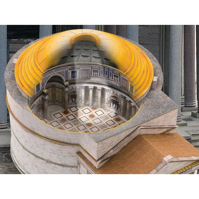 Pantheon er måske den mest imponerende romerske bygning nogensinde er skabt. Denne model byggesæt er fremstillet af karton og trykt i otte farver. Den er lavet på en skala fra 1: 300 og har en gennemsnitlig sværhedsgrad. Modellen måler 28 x 19 x 16 cm. Den midterste af kuplen er åben til at kigge til himlen. Denne bygning har en skrånende gulv til at dræne regnvand. Kuplen er lavet af uarmeret beton, en romersk opfindelse. Pantheon, genopbygget af kejser Hadrian i 125, var indtil det 16. århundrede den største hældning kuppel i verden.