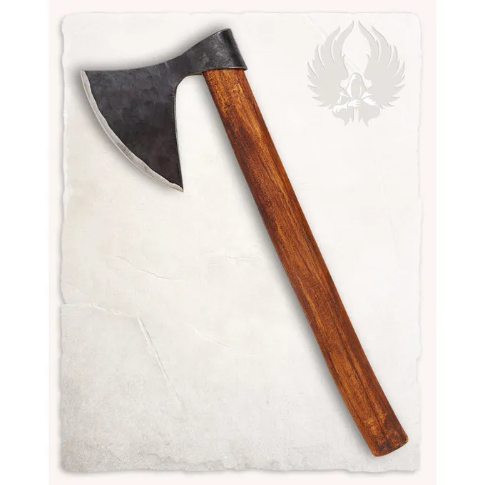 Denne smarte Mytholon økse er perfekt til reenactment eller LARP lejr! Denne økse er behageligt at holde i hånden, og du kan bruge den til at hugge brænde og alle mulige andre daglige gøremål. Øksen er skarp og lavet af hårdt træ og stål. Akser som denne blev anvendt i (tidligt) middelalderen. Øksen hoved har en antik og hånd-slået færdig, så det ser ekstra autentiske.
