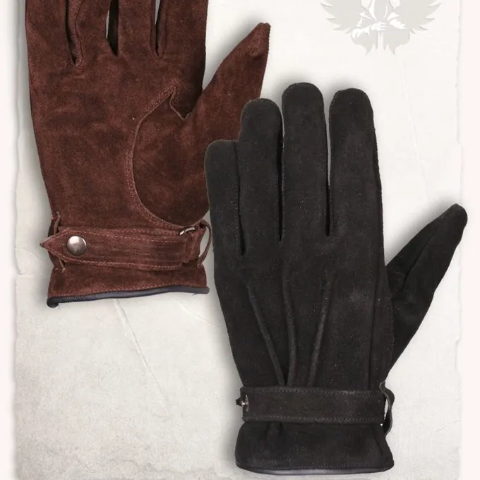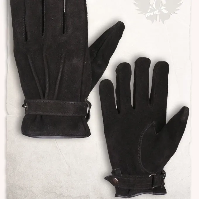 Gode handsker til sværdkamp, HEMA, reenactment, larp og uddannelse. Disse handsker er lavet af høj kvalitet og stærk ruskind. De er meget velegnet til kampe, fordi de er foret og forstærket på indersiden. Samtidig, det bløde materiale føles behageligt mod huden. De kan også bæres perfekt under stål handsker. Disse handsker fås i 3 størrelser. Mål afstanden mellem din pegefinger og din lille finger på håndfladen. Størrelse S: op til 9 cm brede, størrelse M: op til 11 cm bred, størrelse L: op til 13 cm bred. Du kan justere størrelsen af håndleddet med en trykknap.