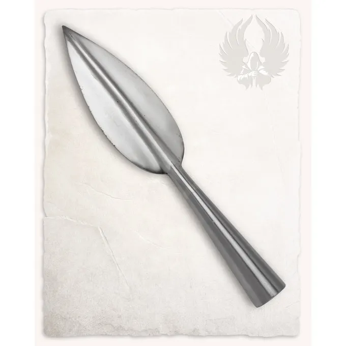 Spyddet var en populær Viking våben. Denne spydspids er designet til spydkast. Den har en rund kant og en skarp, forstærket spids.
