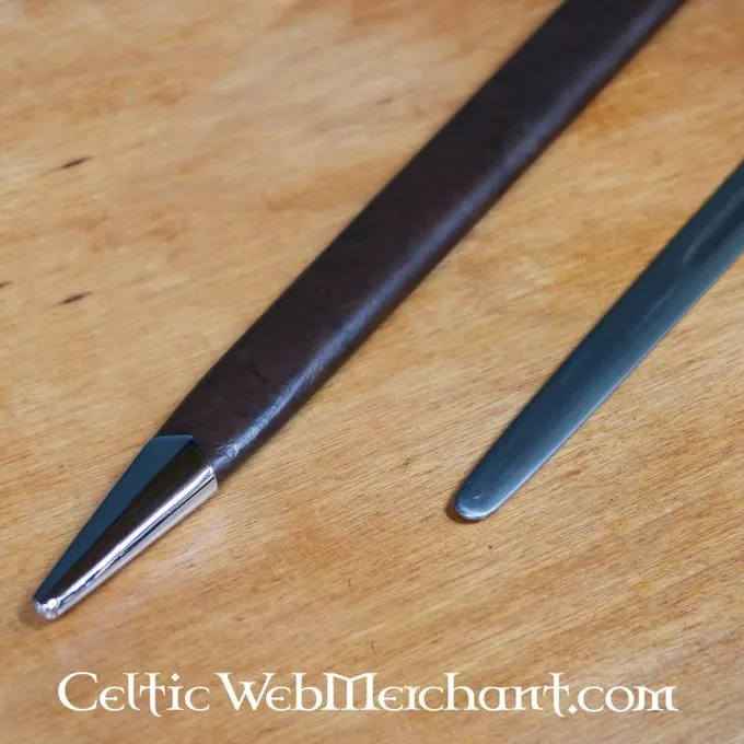 Denne en-og-en-halv-hander har en træ-skorpe indpakket med brunt læder og et brunt lædergreb. Kanten er 3 mm tyk, så sværdet er velegnet til genindførelse af slag og HEMA. Derudover er klingen hærdet og fremstillet af EN42J fjederstål. Den har en kerne med en stålhårdhed på 45 HRC og kanten har en hårdhed på 50 HRC. På grund af de to forskellige hårdheder er sværdet fleksibelt og mindre sprødt end sammenlignelige modeller. Dette sværd er en kombination af fremragende håndværk og mange års HEMA-erfaring.