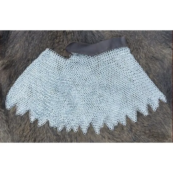 Denne kæde mail brynjekrave er fremstillet af 1,6 mm tyk galvaniseret gathered Runde ringe med en indre diameter på 8 mm. Det kan fastgøres til hjelmen med en 4,5 cm bred læderrem. Længden af båndet er 54 cm. Det vejer ca.. 3,5 kg
