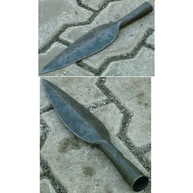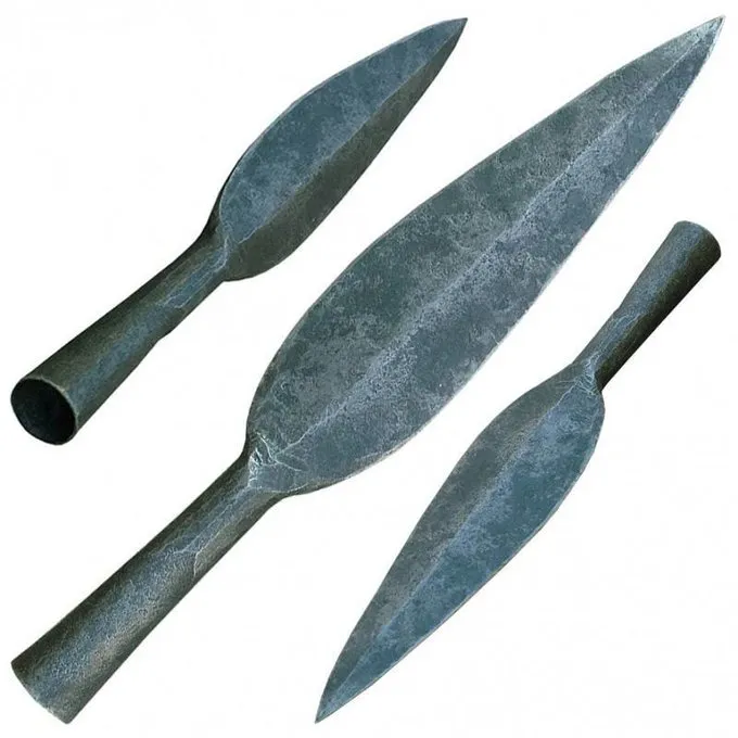 Spydhoveder som dette blev brugt mellem det 7. og 1. århundrede f.Kr. Originalen af denne replika er fundet i Gallien og er nu en del af samlingen af Musée d’archéologie nationale i Saint-Germain-en-Laye (under Paris). Denne type blev hyppigt brugt af de germanske og keltiske stammer i hele Europa.