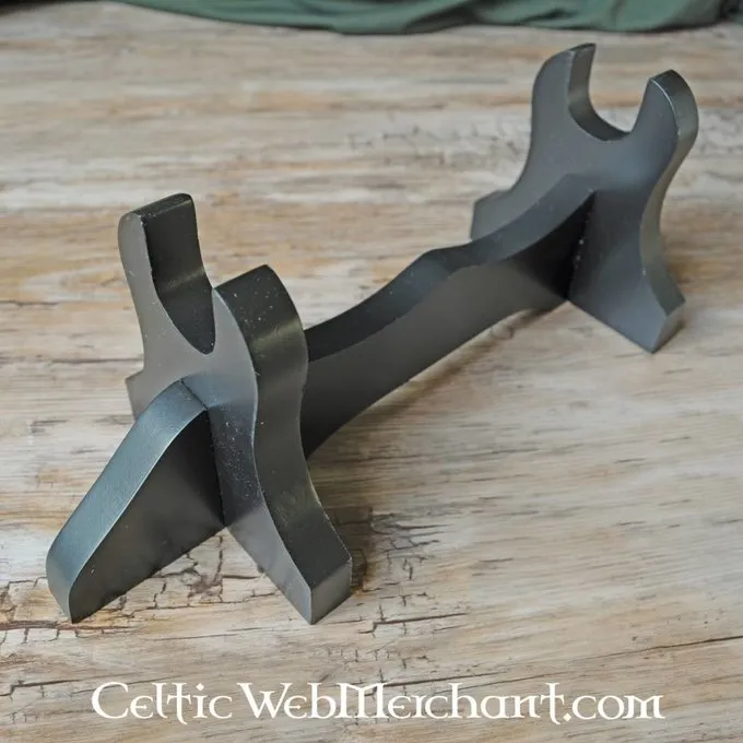 Denne træstativ er perfekt til at vise dit sværd, samurai-sværd eller dolk. Den er lavet af sort træ. Den er 30 cm bred og 11 cm lang.