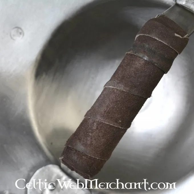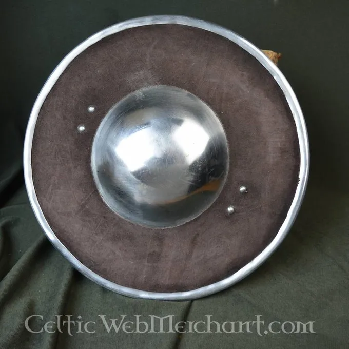 Denne runde bukkel er dækket med læder for ekstra beskyttelse. Bukkel som dette blev primært brugt i renæssancen, selvom den type var meget ældre. Dette våben er perfekt kombineret med en én-hånds sværd eller en bue.