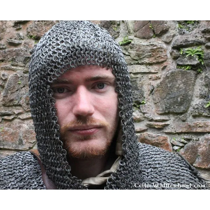 Denne coif er fremstillet af 1,4 mm tykt Runde ringe med en indre diameter på 8 mm. De er vævet fire i én og efterfølgende nitteed med Runde nitter. Det vejer ca.. 3,6 kg