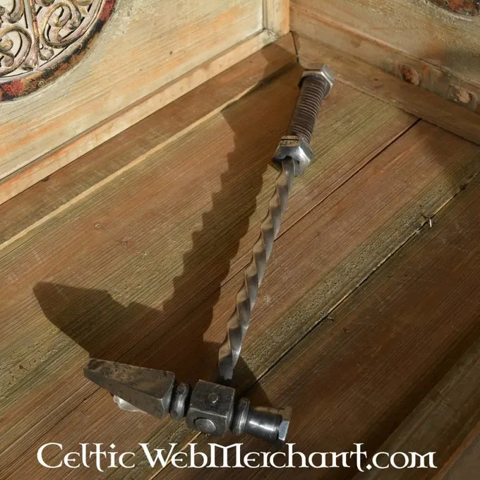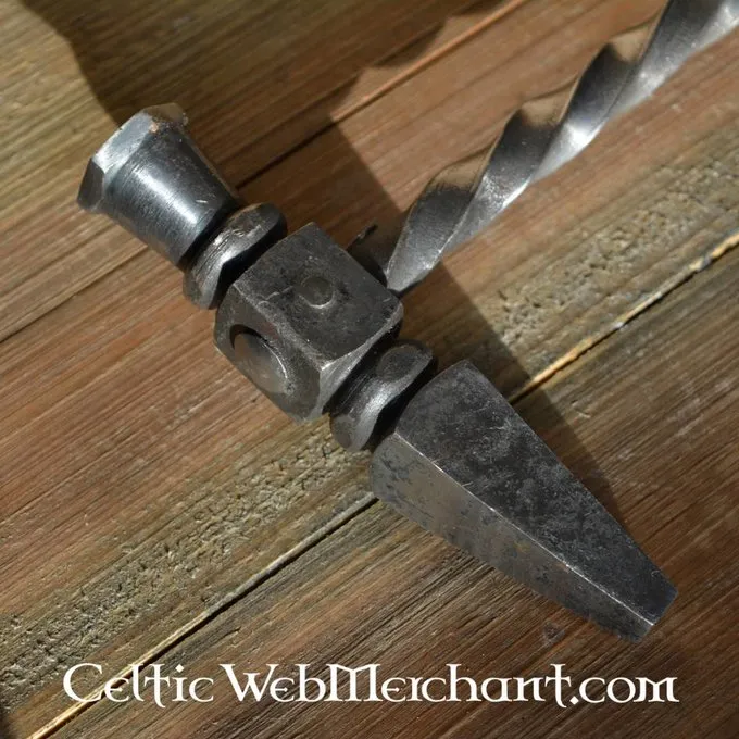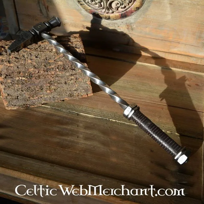 Denne hammer er hånd snoet af stål og har en snoet håndtag. Grebet er pakket rundt med mørkebrun læder. Den hammerhaj er dobbelt naglet til sikkerheden. Den har en længde på 45 cm, en bredde på 15 cm og vejer ca.. 1 kg.