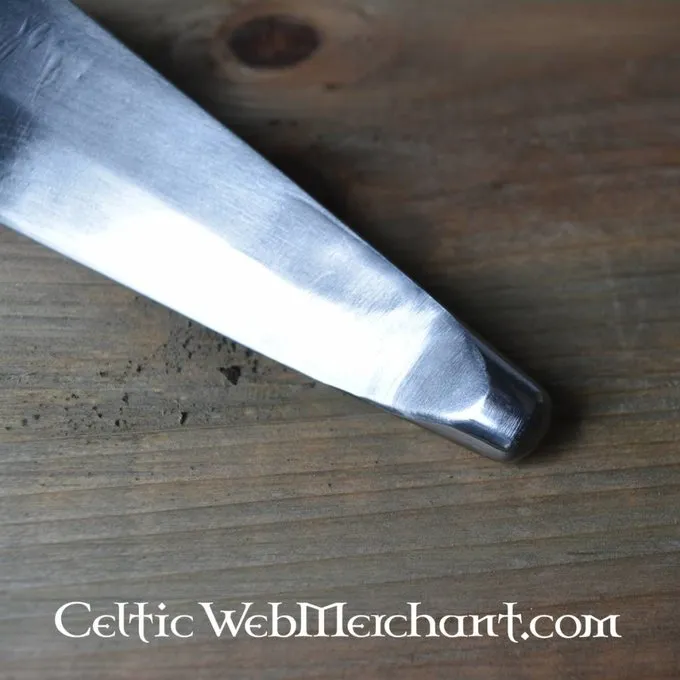 Produkt detaljer: Længde: 22 cm / Hovedstørrelse: 12 cm / Ringdiameter: 3-5 cm / Vægt: 500 g / Materiale: DA45 fjederstål hårdhed 48-50 HRC. / Kant: stump 2 mm (kamp-klar) / Sikkerhedstip: ja / skaft medfølger: nej / based on da historisk original: ja /