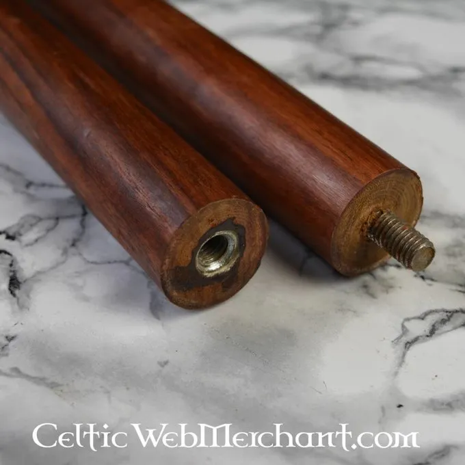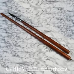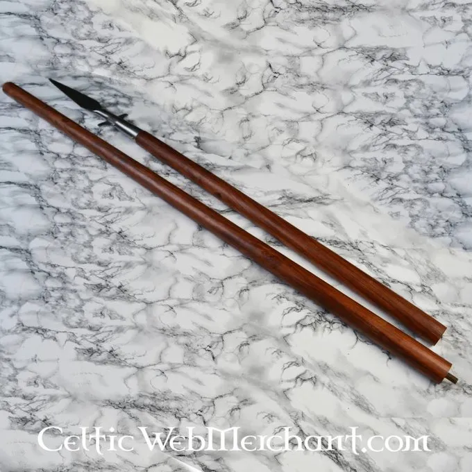 Længden af denne Viking spyd er 220 cm og længden af spydhoved er 40 cm. Det træ stilk i midten er skruet på