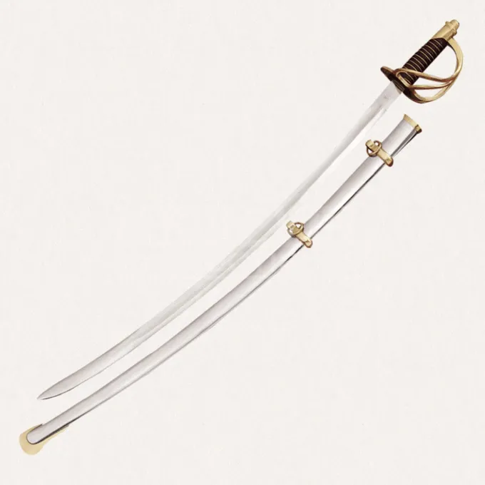 En smuk sabel ved ankerspil Steelcrafts baseret på de mest populære sabler fra Sydstaternes hær under den amerikanske borgerkrig. Vagten ligner 1860 typen sabel. Bladet har en klassisk konfødererede fyldigere. Den sabel har en læder greb omviklet med ståltråd. Den leveres herunder en stål skede med bæltestropper. Den semi-skarp klinge er smedet fra hærdet 1065 kulstofstål med en hårdhed på 48-52 HRC. En stor ornamental sværd for på væggen, også fantastisk til amerikanske borgerkrig reenactment og Cosplay fra serier som Hell on Wheels og Deadwood. Når du blunten bladet, det er et stort slag klar sværd til sværdkamp.