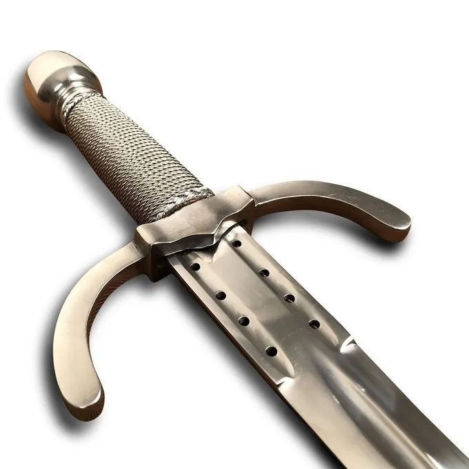 En smuk dolk af ankerspil Steelcrafts, baseret på originale dolke fra det 16. århundrede. Daggers som denne blev brugt i renæssancen i de sydlige byer som München. I denne periode en dolk blev anvendt i kombination med sværdkamp. Den blev også brugt som en stand-alone våben i stedet for et sværd. Denne elegante dolk har et greb omviklet med ståltråd, et blad med en hul mønster foroven og en bøjet cross-guard. Den semi-skarp klinge er fremstillet af 1065 kulstofstål og hærdet til en hårdhed på 48-52 HRC. Når afstumpet, bladet er perfekt til renæssancen reenactment og historisk europæisk kampkunst. Dolken er også smuk for samlere af historiske replika dolke og for en renæssance kostume. Den dolk leveres inklusive sort læder skede.