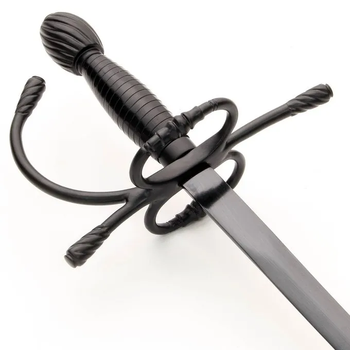 En smuk kårde ved ankerspil Steelcrafts baseret på historiske sværd fra det 17. århundrede, men med en fantasi twist. Denne kårde var inspireret af pirat kårder, der blev brugt af pirater sejler de syv verdenshave. Den kårde sorte fæstet er lavet af snoet stål, der minder om rebet, at en pirat bruger til at invadere et skib. Dette sværd er leveret, herunder en sort skede med kraniet. Den semi-skarp klinge er smedet fra hærdet 1065 kulstofstål med en hårdhed på 48-52 HRC. En stor ornamental sværd til væggen, også smukke til en pirat Cosplay kostume fra serien og film som Black Sails og Pirates of the Caribbean. Når du blunten bladet, det er et stort slag klar sværd til sværdkamp.